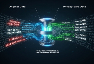 We replace sensitive identifiers with artificial values (tokens or pseudonyms) that allow datasets to retain analytical value while ensuring privacy.